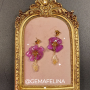 Estos aretes combinan la delicadeza de las flores naturales con el brillo del citrino y el toque moderno del acero inoxidable. Cada pieza contiene flores de guamacho morado reales, cuidadosamente conservadas en resina para mantener su color y forma, convirtiendo cada arete en una pieza única e irrepetible.